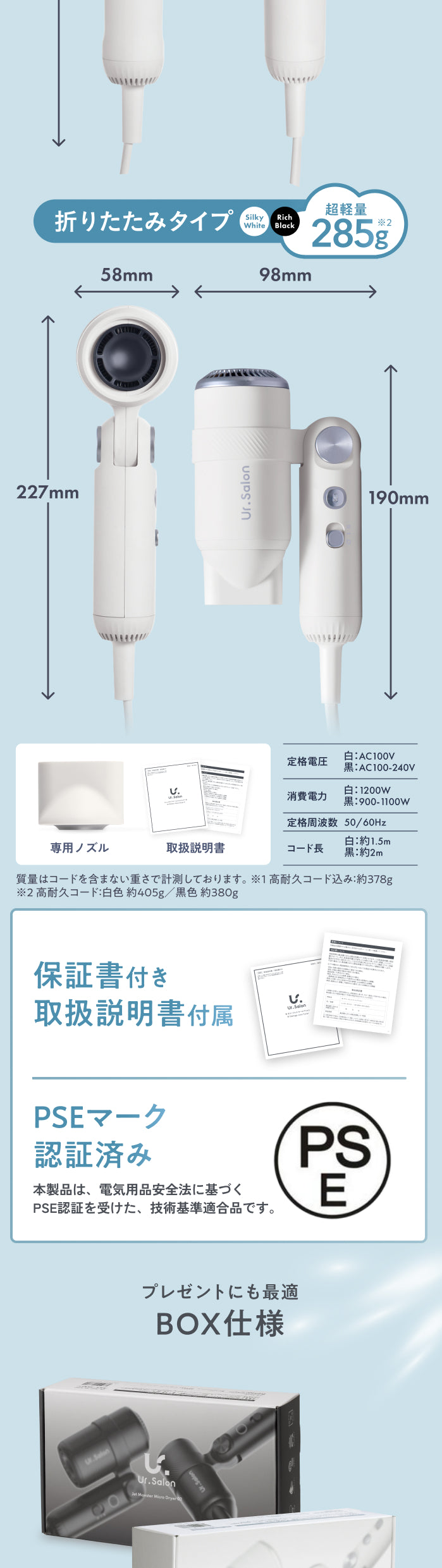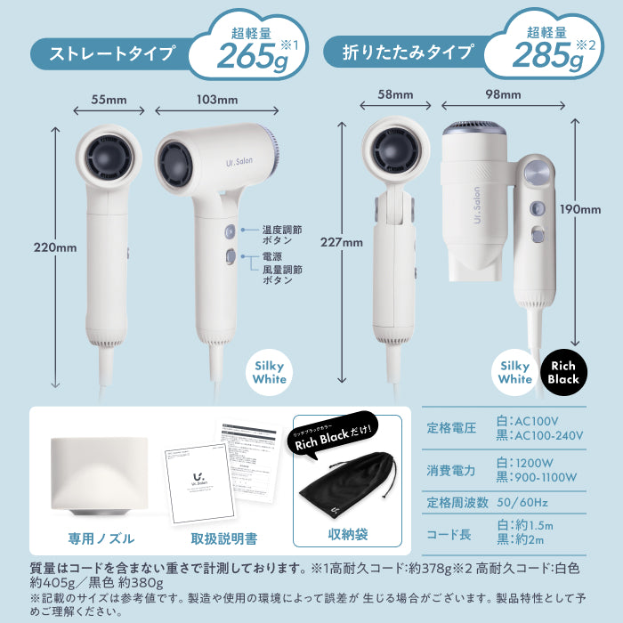 リッチブラック 100-240V(海外対応モデル) - サイズ:高さ227×幅102×奥行58㎜(使用時)